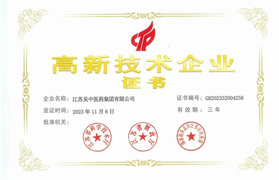 榮譽(yù) :中醫(yī)藥獲評(píng)江蘇省高新技術(shù)企業(yè)