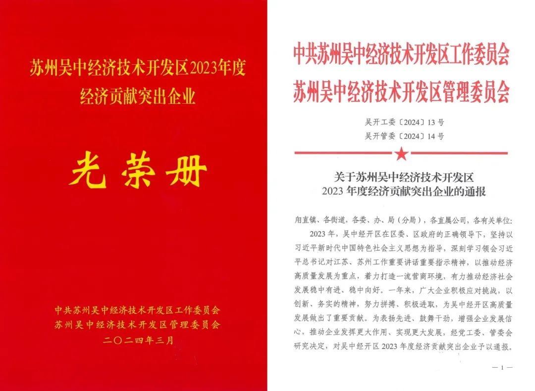 榮譽(yù):公司獲評(píng)吳中經(jīng)開(kāi)區(qū)2023年度經(jīng)濟(jì)貢獻(xiàn)突出企業(yè)