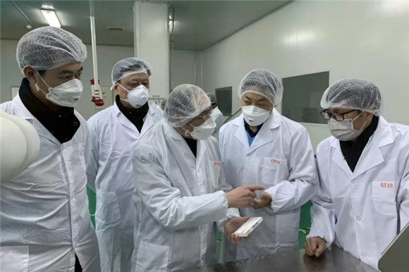 1月28日上午,江蘇省藥監局蘇州檢查分局局長楊文剛及相關領導到工廠進行現場檢查,對藥品生產質量管理及捐贈藥品流向管理做了指導,要求我們企業保證產量的同時,嚴把質量關,要做合格放心的產品。蘇州市工信局、發改委等部門積極與公司對接,了解企業復產存在的困難與問題,努力予以協調保障,支持企業擴大產能、保障市場供應。