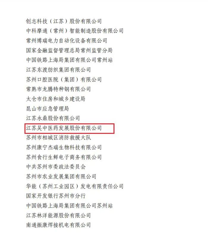 4月23日,根據(jù)《江蘇省總工會(huì)關(guān)于表彰 2024年省五一勞動(dòng)獎(jiǎng)和省工人先鋒號(hào)的決定》(蘇工發(fā)〔2024〕3號(hào)),江蘇吳中醫(yī)藥發(fā)展股份有限公司獲評(píng)江蘇省五一勞動(dòng)獎(jiǎng)狀。